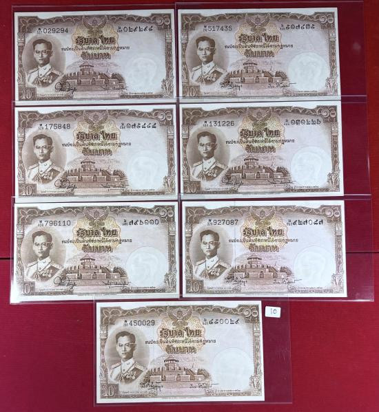 ธนบัตร 10 บาท แบบ9 พิมพ์โทมัส จำนวน 7 ใบ สภาพสวยตามรูป |