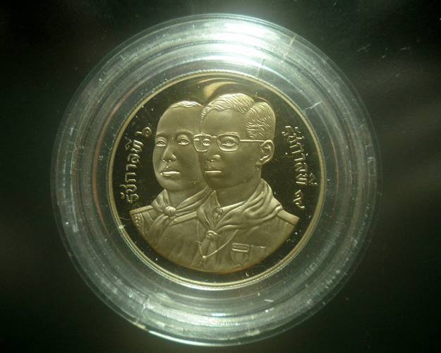 เหรียญที่ระลึก ร.9 พระราชพิธีฉลองสิริราชสมบัติครบ60ปี ทรงกล้องฉายภาพ เนื้อสามกษัตริย์ ปี2549 กรอบทองเลเซอร์ |