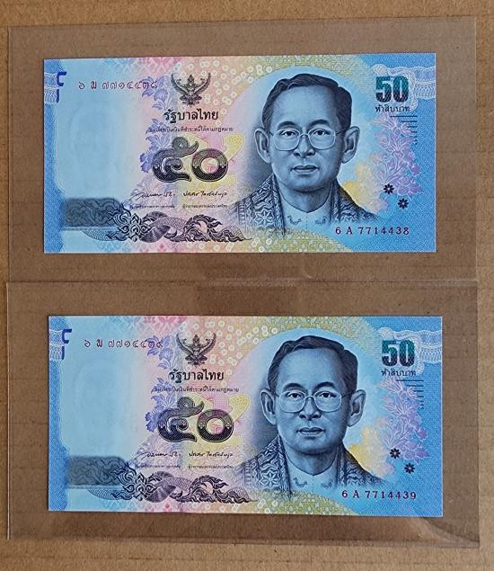 ร.9ธนบัตร 1 บาท หน้าหนุ่มเลขเรียง 2ฉบับ ไม่ผ่านใช้แต่ติดเหลืองตามรูป |