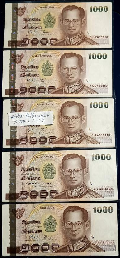 ธนบัตร 1,000 บาท ร.9 แบบ 15 เลขสวย 999X999 |