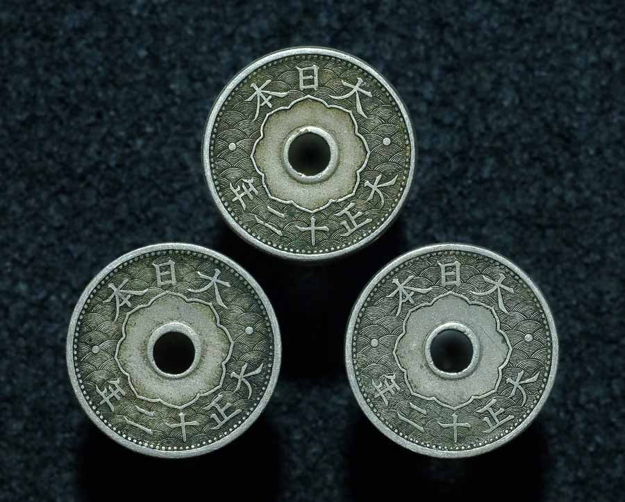 วัดใจ ... เหรียญกษาปณ์ญี่ปุ่น 10 sen ยุคไทโช(Taisho jidai - รัชสมัยสมเด็จพระจักรพรรดิไทโช ปีที่ 12) - ค.ศ.1923 สามเหรียญ |