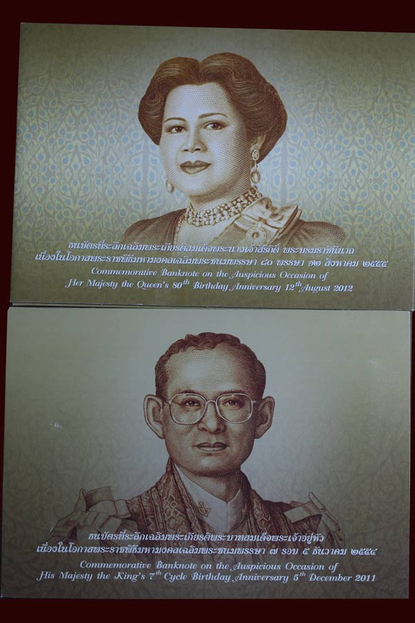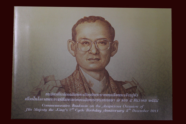ธนบัตรที่ระลึกเฉลิมพระเกียรติพระบาทสมเด็จพระเจ้าอยู่หัวเนื่องในโอกาสพระราชพิธีมหามงคลเฉลิมพระชนมพรรษา ๖ รอบ จำนวน 5ฉบับ |