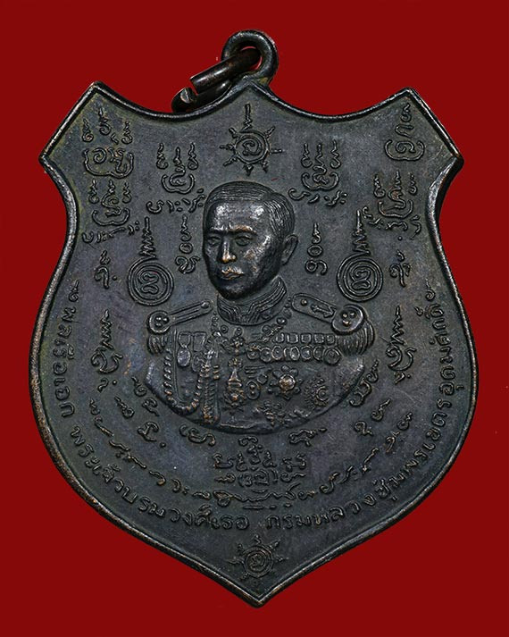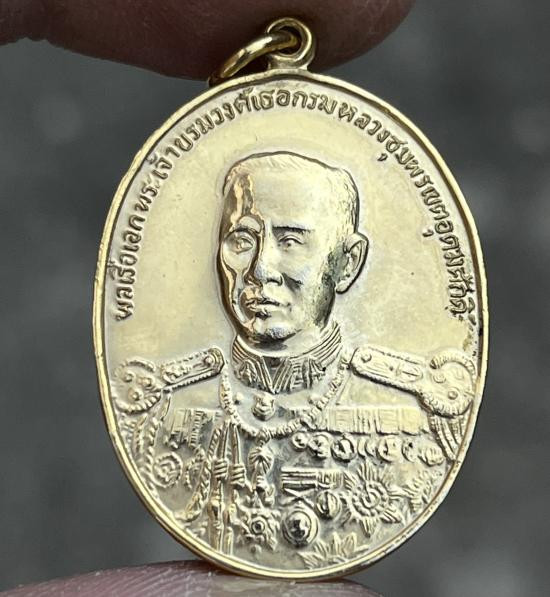 เหรียญ 100 ปี กรมหลวงชุมพร จัดสร้างโดยราชสกุลอาภากร หลวงพ่อสงฆ์ วัดเจ้าฟ้าศาลาลอย ร่วมปลุกเสก กะไหล่ทอง |