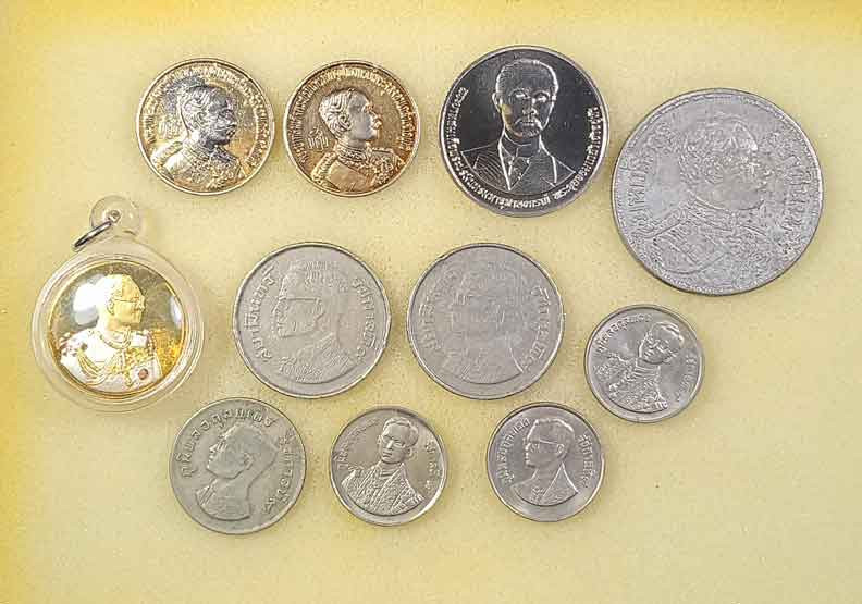 เหรียญร.5 3 เหรียญ + เหรียญร.9 4 เหรียญ |