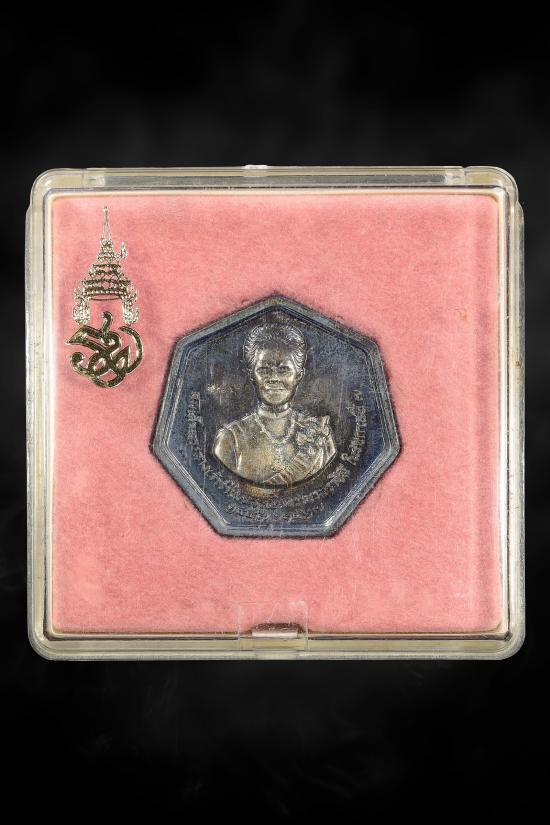 เหรียญเงิน 50 ปี ที่ระลึกพิพิธภัณฑสถานแห่งชาติ 100 ปี พ.ศ.2517 เนื้อเงิน หนัก 24.7 กรัม ขนาดเส้นผ่าศูนย์กลาง 38 มิล พร้อมตลับ |