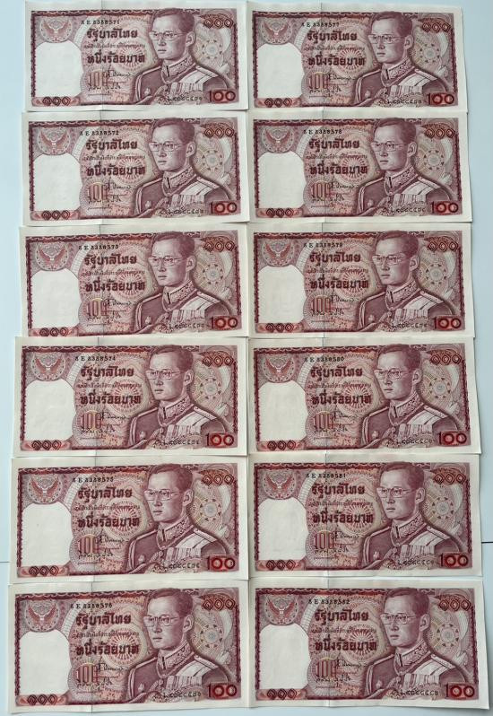 ธนบัตร 100 บาท รัชกาลที่ 9 แบบ 12 ช้างแดง จำนวน 10 ใบ สวยใหม่กริ๊บเลขแหนบ |