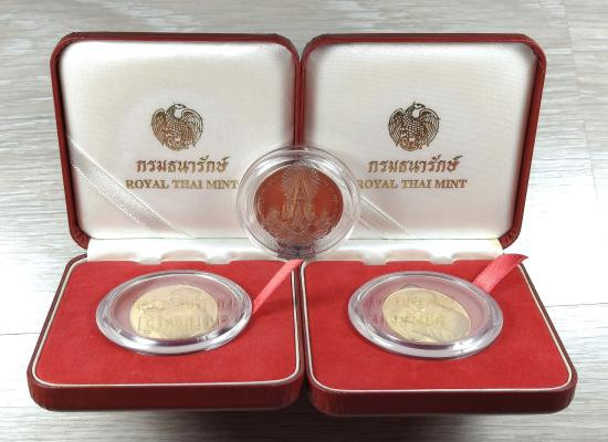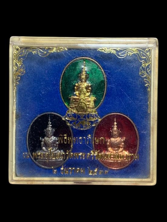 ชุดเหรียญพระแก้วมรกต เนื้อกะไหล่เงิน ทอง นาค ลงยา ปี39 ฉลองสิริราชสมบัติครบ 50ปี กล่องเดิม |