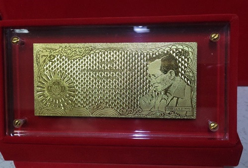แผ่นทองคำที่ระลึก พระราชพิธีมหามงคลเฉลิมพระชนมพรรษา ในหลวง ร.9 ครบ6รอบ 72พรรษา พ.ศ.2542 |