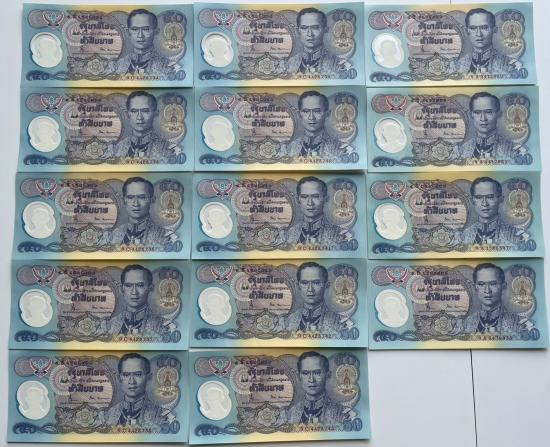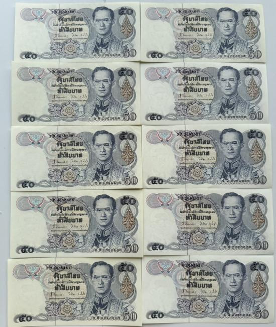 ธนบัตร 1 บาท ร.9 โทมัส 10 ฉบับ เรียงเลข |