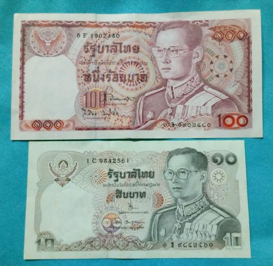 ธนบัตร 100และ10บาท ร.9เคาะเดียวค่ะ |