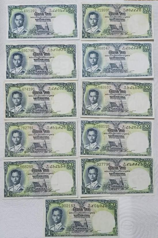 ธนบัตร 1 บาท ในสมัยรัชกาลที่ 9 สภาพผ่านการใช้งาน จำนวน 11 ใบครับ |