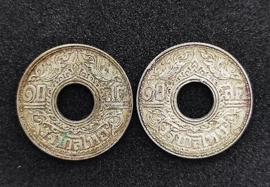 เหรียญเงิน 10 สตางค์ ลายกนก พ.ศ.2484 เนื้อเงิน จำนวน 2 เหรียญ |