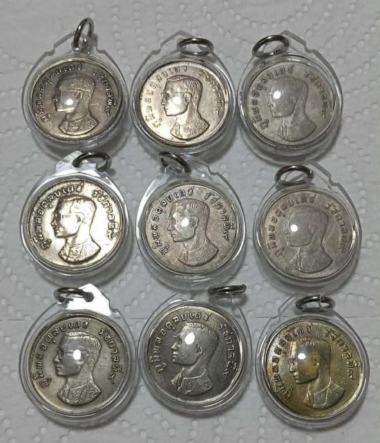 เหรียญ 1 บาท หลังครุฑ พ.ศ.2517 ในสมัยรัชกาลที่ 9 พกติดตัวไว้เป็นมงคล เหรียญสภาพผ่านการใช้งานผิวเดิม เลี่ยมพลาสติกกันน้ำครับ จำนวน 9 เหรียญ ครับ |