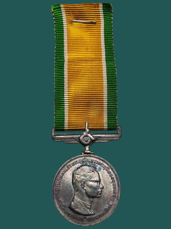เหรียญแพรแถบ ในหลวงที่ระลึกฉลองสิริราชสมบัติครบ 25 ปี เนื้อเ งิน ปี 2514 |