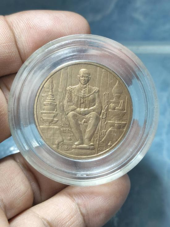 เหรียญในหลวง ร.9 หลัง ภปร. เฉลิมพระเกียรติ โมเน่ เดอ ปารีส โรงพยาบาลศิริราชจัดสร้างปี 2546 พร้อมตลับ |