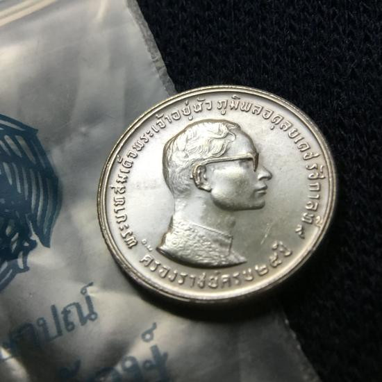 เหรียญ พระบาทสมเด็จพระปรมินทรมหาภูมิพลอดุลยเดช * สมเด็จพระนางเจ้าสิริกิติ์พระบรมราชินีนาถ ที่ระลึกในการเสด็จพระราชดำเนินเยือนสหรัฐอเมริกาและทวีปยุโรป (บล็อกนอก เนื้อเงิน ) ปี 2503 |