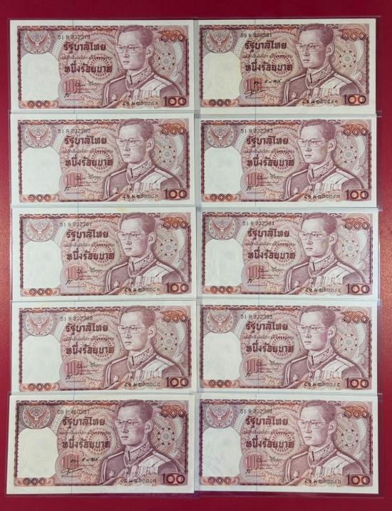 ธนบัตร 100 บาท รัชกาลที่ 9 แบบ 10 เรือสุพรรณหงส์ จำนวน 1 ใบ สภาพสวยตามรูป |