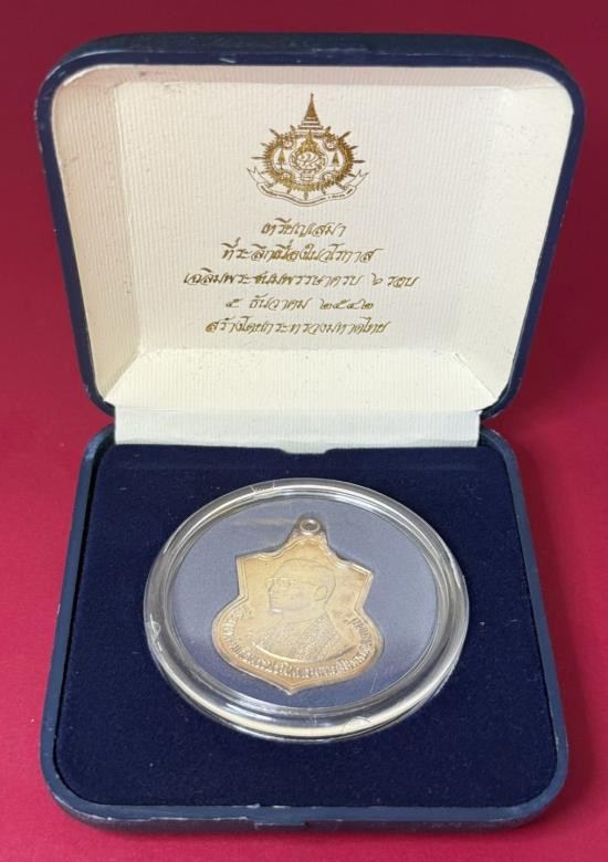 เหรียญเสมา ที่ระลึกเนื่องในวโรกาส เฉลิมพระชนมพรรษาครบ 6 รอบ 5 ธันวาคม 2542 สร้างโดยกระทรวงมหาดไทย เหรียญเนื้อเงินพ่นทราย |