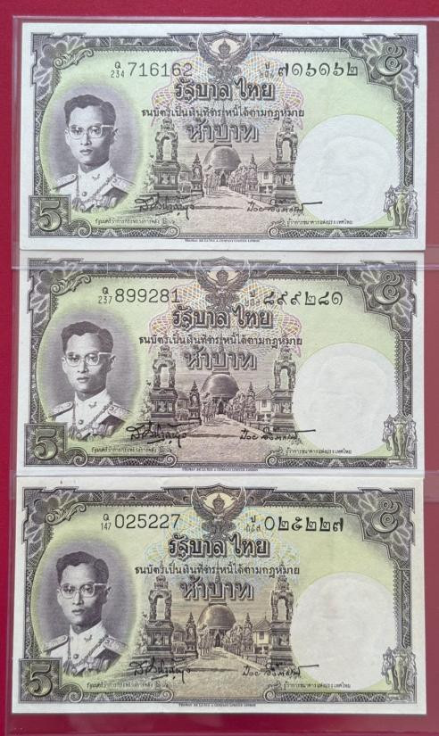 ธนบัตร 5 บาท รัชกาลที่ 9 แบบที่9 พิมพ์โทมัส จำนวน 3 ใบ สภาพสวยตามรูป |
