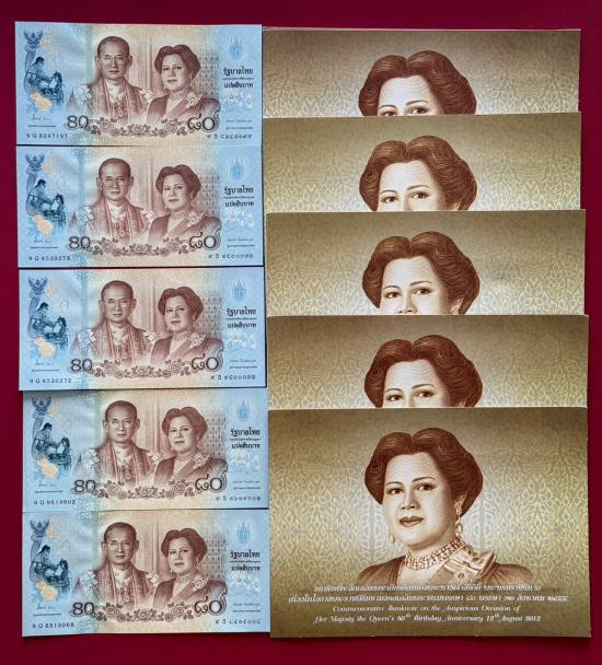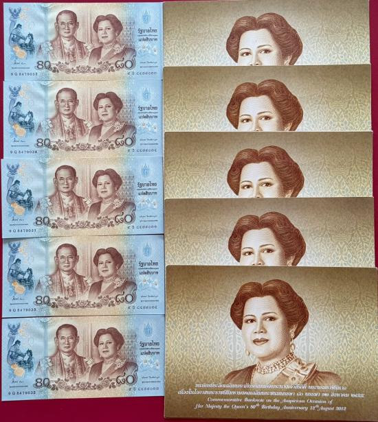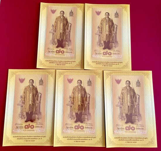 ธนบัตร 20 บาท รัชกาลที่ 9 แบบที่ 9 พิมพ์โทมัส จำนวน 5 ใบ สภาพสวยตามรูป |