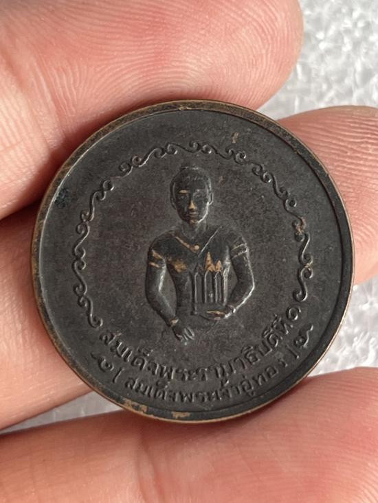 เหรียญสมเด็จพระรามาธิบดี ที่ 1 สมเด็จพระเจ้าอู่ทอง ที่ระลึกในงานสร้างศาลหลักเมือง จ.อยุธยา ปี 2525 ล.ป.ดู่ ปลุกเสก |