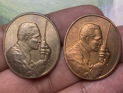 ในหลวง ร.9 ทรงวิทยุ เนื้อนวะ + ทองแดง ซองเดิม |
