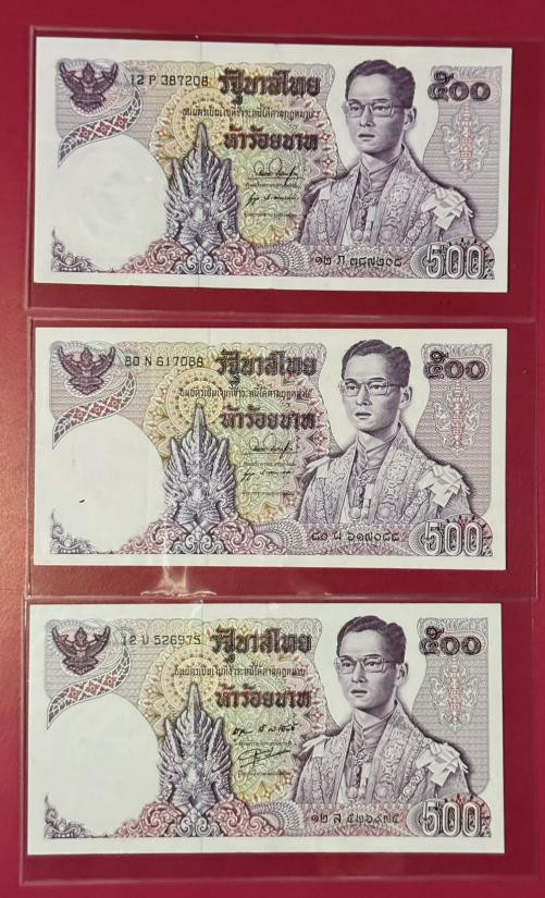 แบงค์ 500 บาท ร. 9 แบบ 11 พระปรางค์ 3 ยอด 3 ใบ สวย เดิมๆ |