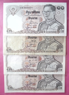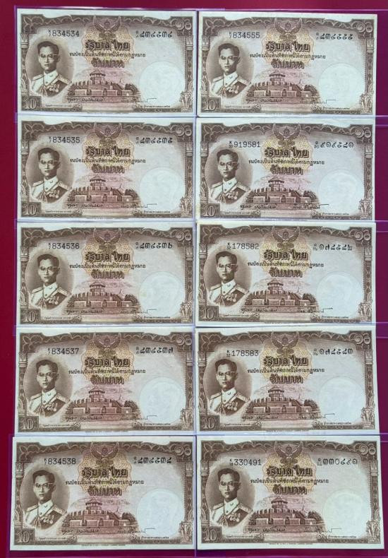 เคาะเดียว..ธนบัตรหมุนเวียน แบบที่ 12 ฉบับราคา 10 บาท.รวม 8 ฉบับ 8 ลายเซ็น สภาพใช้ มีรอยพับตามรูป |