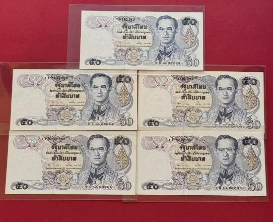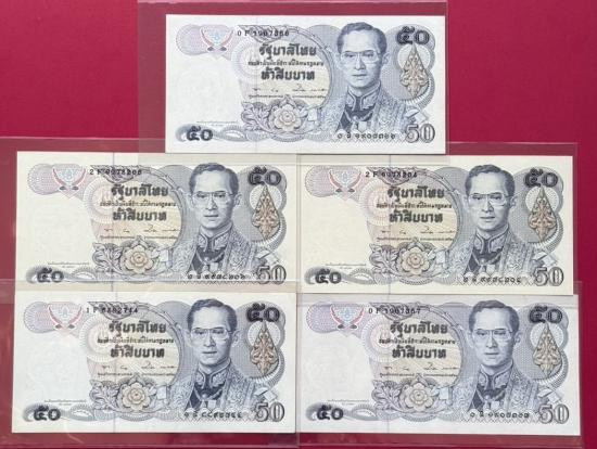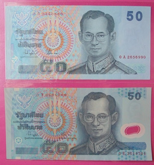 เคาะเดียว..ธนบัตรหมุนเวียน แบบ 15 ชนิดราคา 50 บาท. พิมพ์ด้วยกระดาษ และ พิมพ์ด้วยโพลิเมอร์ รวม 2 ฉบับ ลายเซ็นเดียวกัน สภาพไม่ได้ใช้ |