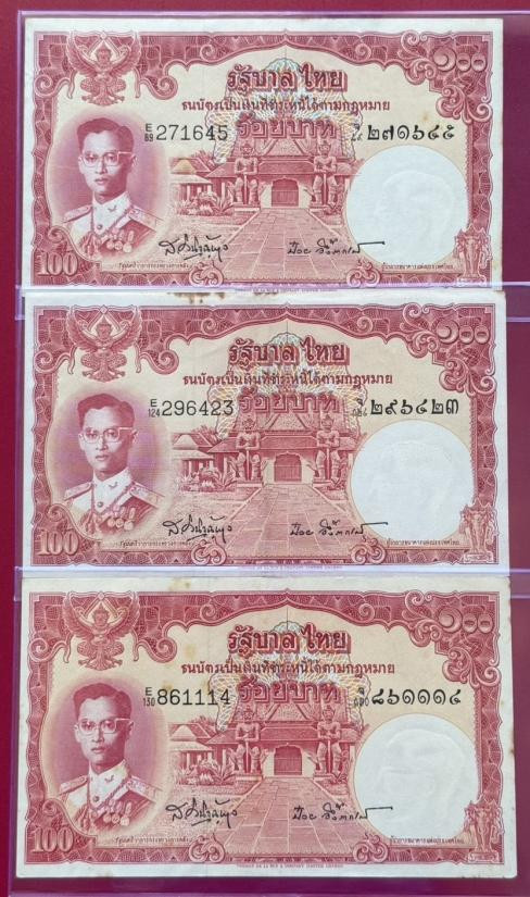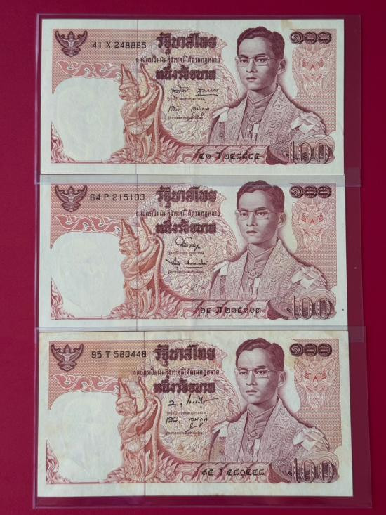 แบงค์ 100 บาท ร 9 แดง พิมพ์โทมัส 3 ใบ เดิมๆๆ |