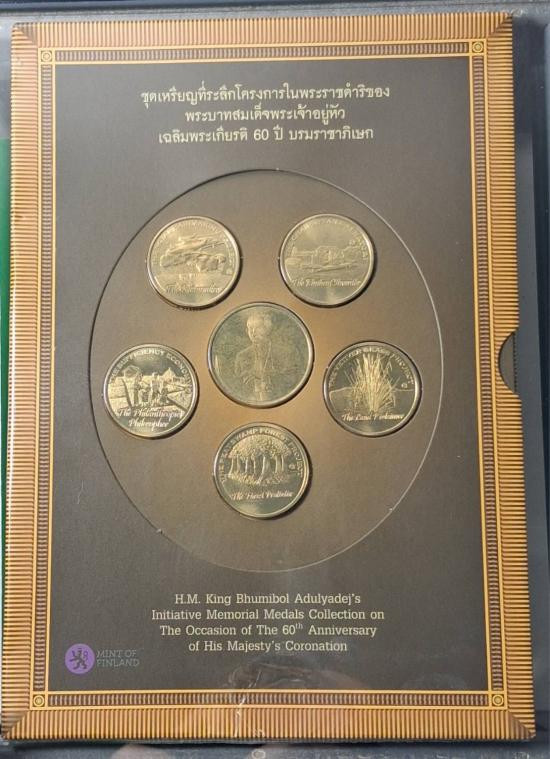 ชุดเหรียญที่ระลึกโครงการในพระราชดำริของพระบาทสมเด็จพระเจ้าอยู่หัว เฉลิมพระเกียรติ 60 ปี บรมราชาภิเษก ยังไม่แกะซีนครับ |