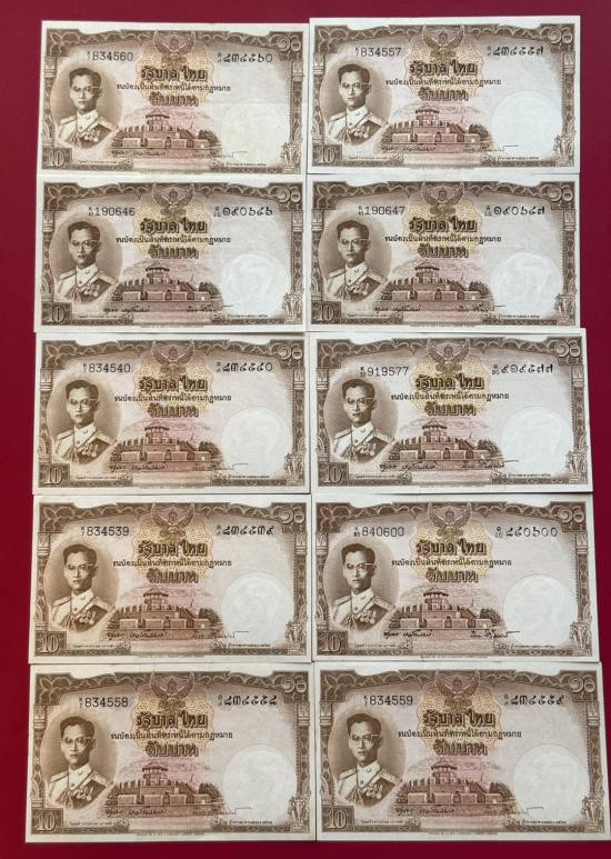 ธนบัตร 10 บาท รัชกาลที่9 พิมพ์โทมัส แบบ 9 จำนวน 10 ใบ สภาพสวยตามรูป |