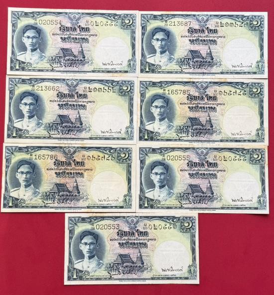 ธนบัตร 1 บาท โทมัส รัชกาลที่ 9 หน้าหนุ่ม จำนวน 7 ใบ สภาพสวยตามรูป |