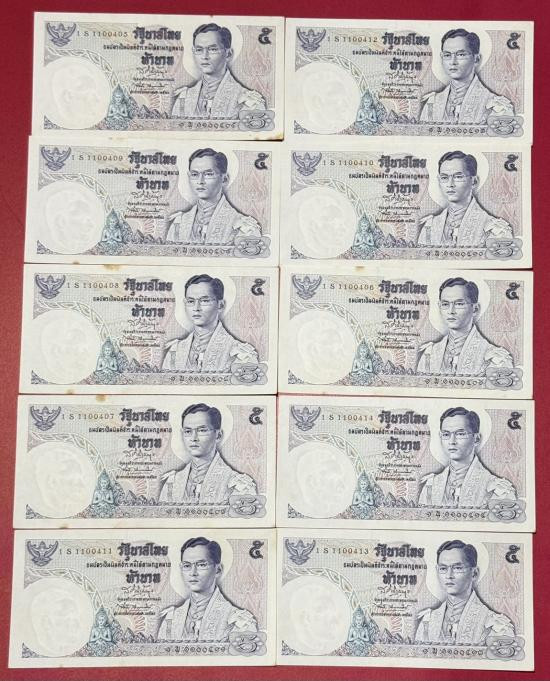 ธนบัตร 5 บาท แบบ 11 รัชกาลที่ 9 จำนวน 10 ใบ สภาพสวยตามรูป |