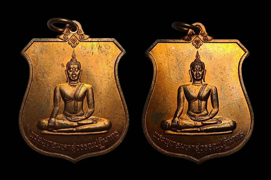 เหรียญรัชกาลที่ 5 ฉลองฯครบ 100 ปี หลังพระพุทธชินราช วัดราชบพิธ พ.ศ. 2511 อัลปาก้า ผิวทอง สวยครับ |