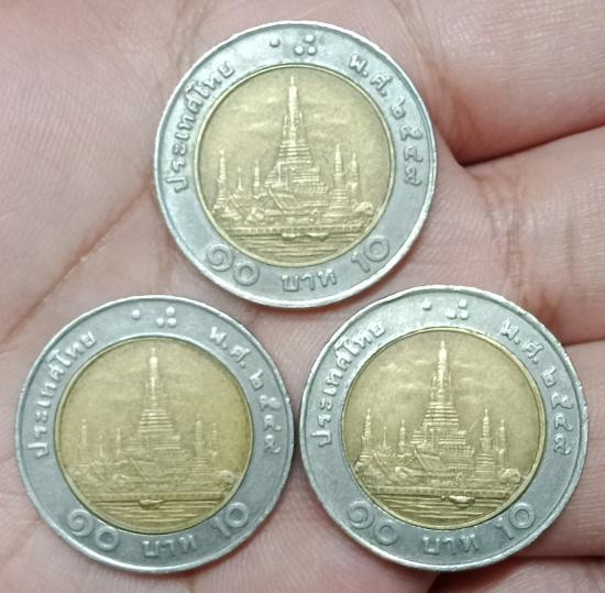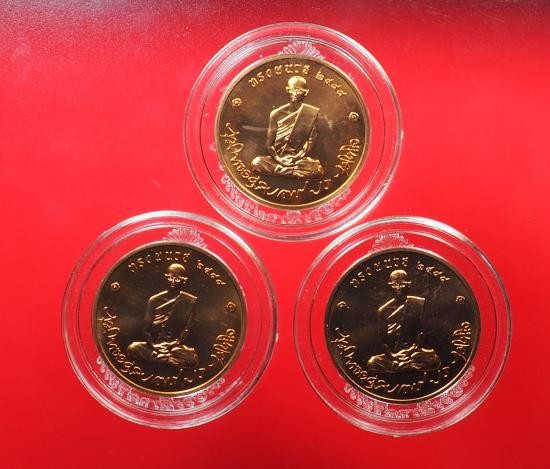 เหรียญในหลวงทรงผนวช เนื้อทองแดง ที่ระลึกบูรณะพระเจดีย์ วัดบวรนิเวศ ปี 2550 จำนวน3 เหรียญ |