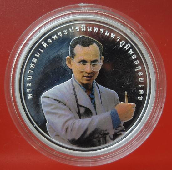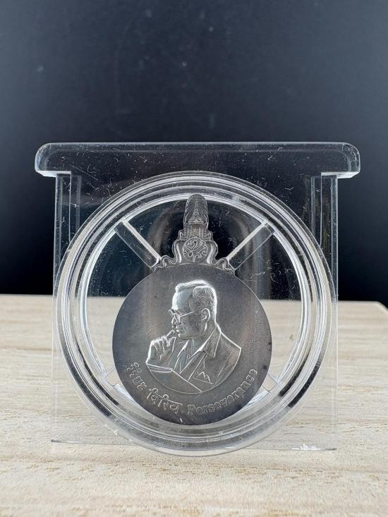 หรียญพระรูปรัชกาลที่9 ที่ระลึกเขาชีจรรย์ เนื้อเงิน ขนาด 3 เซน วัดญานสังวราราม ปี 2538 |