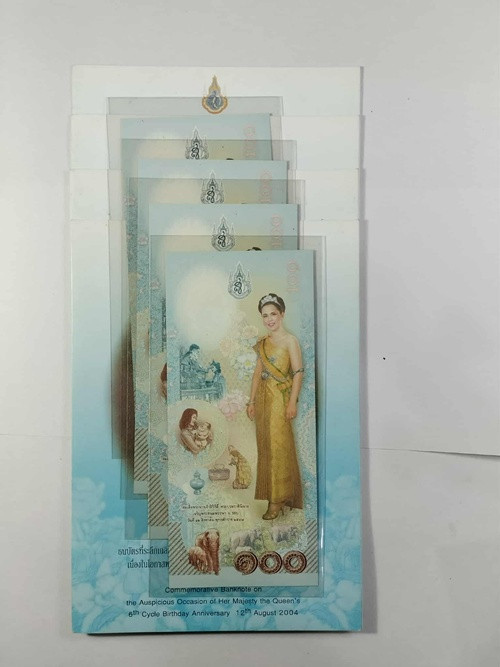 ธนบัตรที่ระลึก ๑๐๐ บาท เนื่องในโอกาสพระราชพิธีมหามงคลเฉลิมพระชนมพรรษา ๖ รอบ พระพันปีหลวง สมเด็จพระนางเจ้าสิริกิติ์ |