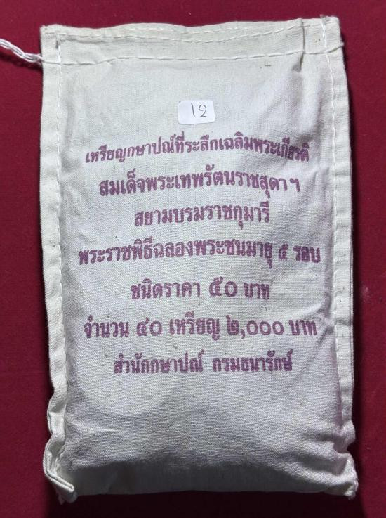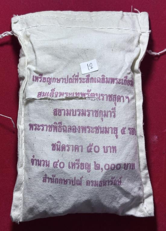 เหรียญ 50 บาทที่ระลึกเฉลิมพระเกียรติ สมเด็จพระเทพรัตนราชสุดาๆ สยามบรมราชกุมารี พระราชพิธีฉลองพระชนมายุ 5 รอบ ถุงเดิมเปิดแล้ว จำนวน 40 เหรียญ สภาพสวยตามรูป |
