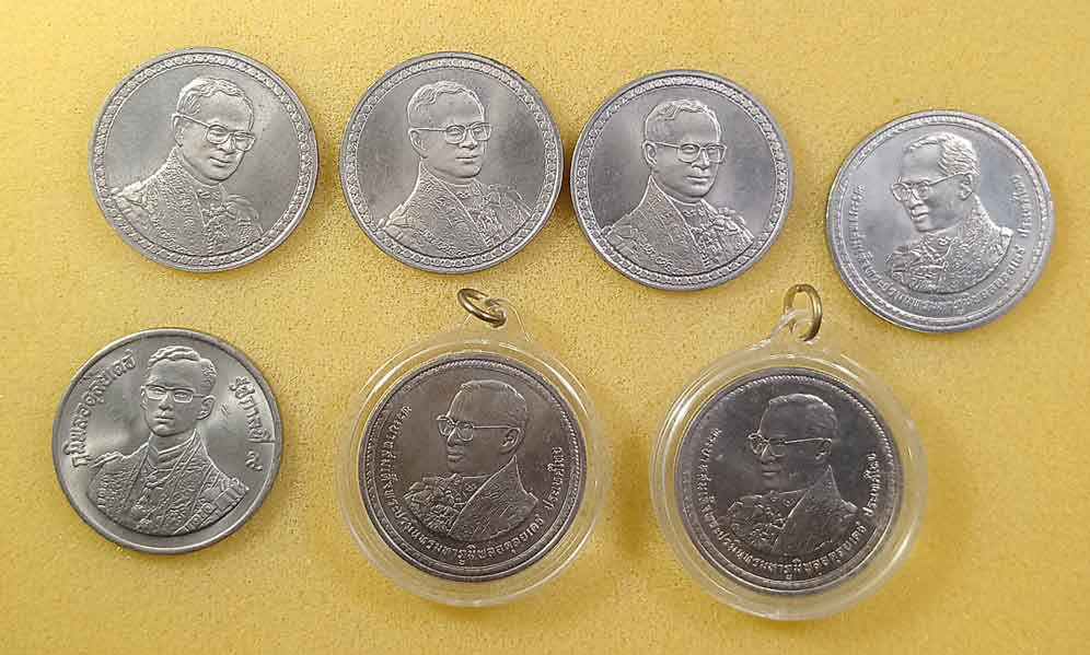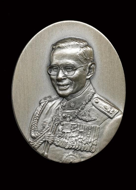 หรียญพระรูปรัชกาลที่9 ที่ระลึกเขาชีจรรย์ เนื้อเงิน ขนาด 3 เซน วัดญานสังวราราม ปี 2538 |