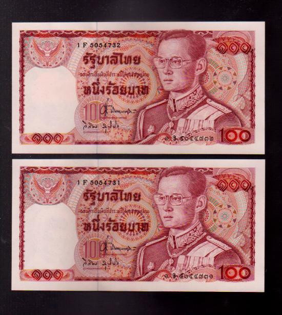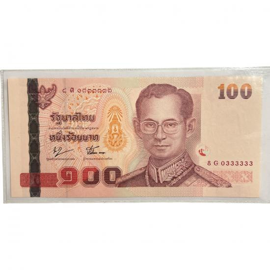 ธนบัตร 100 บาทไทย แบบ 15 รุ่น 2 (เลิกทาส) ในรัชกาลที่ 9 เลข 8ต (G) 0333333 UNC |
