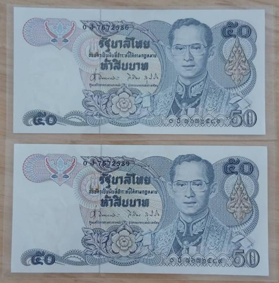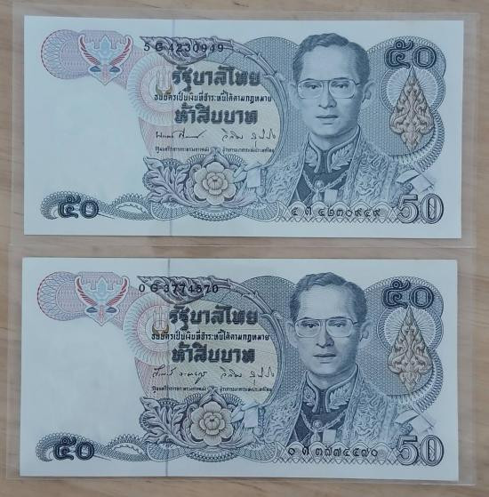 ธนบัตรที่ระลึก 50 บาท ฉลองสิริราชสมบัติครบ 50 ปี UNC สวยๆ เลขลงท้าย 700 และ 900 |