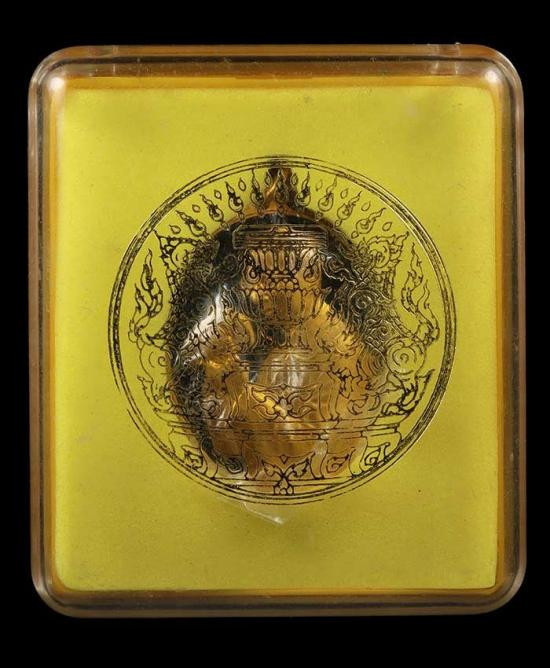 เปิดวัดใจ พระศาสดาใบเสมา(ภปร.) วัดบวรนิเวศวิหาร กทม. พ.ศ.๒๕๓๒ (เนื้อผงฯโรยเส้นพระเกศาสมเด็จพระญาณสังวร สมเด็จพระสังฆราชฯ.) พร้อมกล่องเดิม |