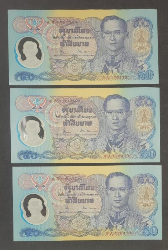 ธนบัตร 50 บาท กาญจนาภิเษก 3 ฉบับ เลขขเรียง |