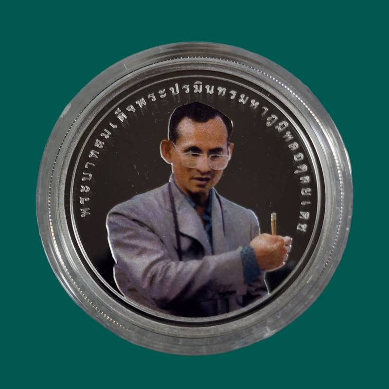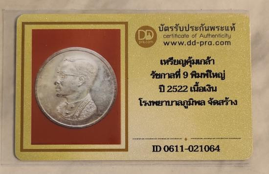 เหรียญรัชกาลที่9 รุ่นคุ้มเกล้า พิมพ์ใหญ่ เนื้อเงิน ปี2522 วัดใจ700แดง |