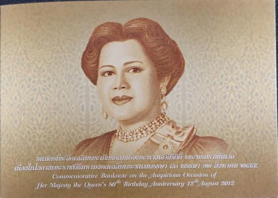 ธนบัตรเฉลิมพระเกียรติสมเด็จพระนางเจ้าสิริกิติ์ พระบรมราชินีนารถ เนื่องในโอกาสพระราชพิธีมหามงคลเฉลิมพระชนมพรรษา ๘๐ พรรษา ๑๒ สิงหาคม ๒๕๕๕ |