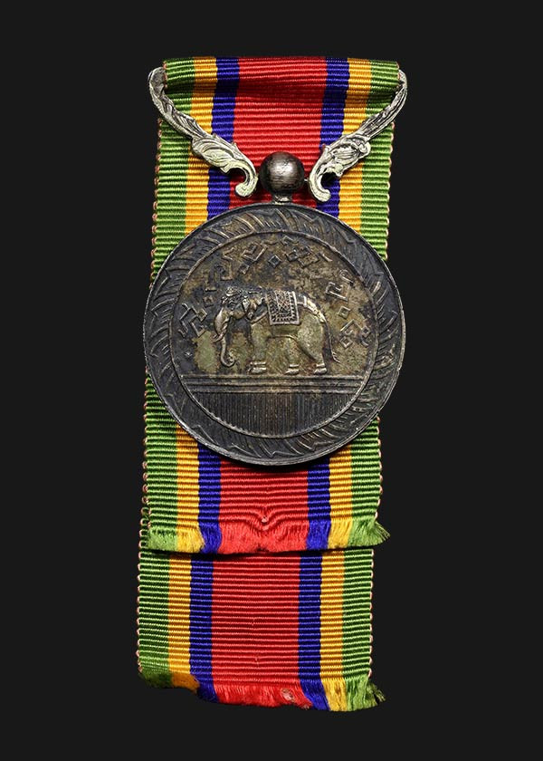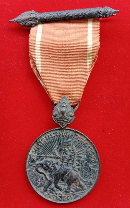 เหรียญเครื่องราชอิสริยาภรณ์ เหรียญช้างเผือกหลังพระมหาพิชัยมงกุฏ (ส.พ.ช.ม.จ.๕) กองกษาปณ์ เนื้อเงิน พร้อมแพรแถบ |