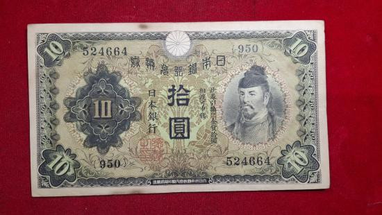 ธนบัตร 10 เยนของประเทศญี่ปุ่น ซึ่งเป็นธนบัตรที่ออกโดยธนาคารแห่งประเทศญี่ปุ่น (Bank of Japan) |