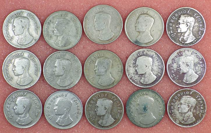 เหรียญ 1 บาท รัชกาลที่9 หลังครุฑ ครุฑปี 17 สภาพหมุนเวียนผ่าน ทั้งหมดจำนวน 15 เหรียญ เคาะเเรกแดง100.-ครับ |