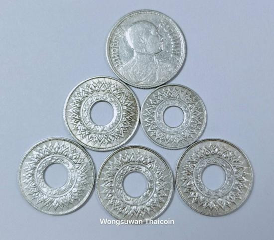 เหรียญ เฟื้องหนึ่ง เนื้อเงิน ร.5 หลังตราแผ่นดิน |